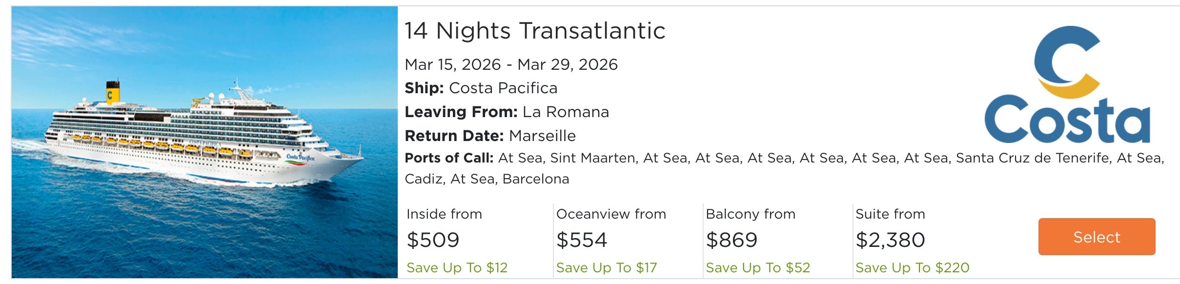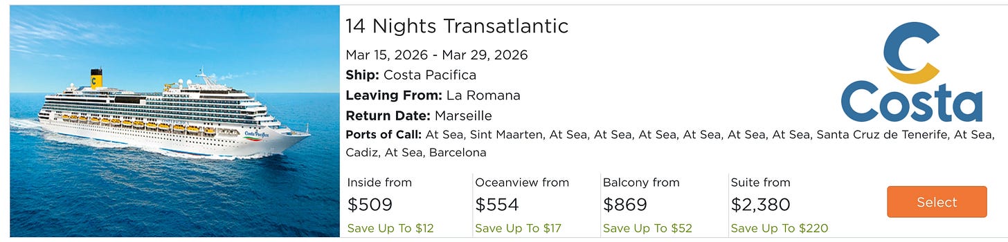 🛳️ Live Steal Transatlantic: Just $79/day for 2 14 night cruise from DR to France