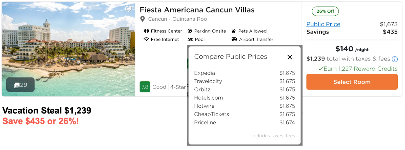Vacation Steal developed a revolutionary travel concept - a wholesale membership club like Costco and Sam’s Club. The VS Insider membership delivers up to 29% in every day discounts compared to Expedia, other web sites, and even travel agents. Members get access to book 2 million worldwide resorts, hotels, homes, and cruises and can save hundreds of dollars per trip. Our travel platform is trusted by American Express, TMobile, AAA, AARP, and many others.
